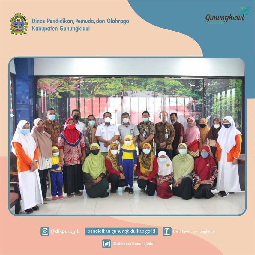 WONOSARI- Dinas Pendidikan, Pemuda, dan Olahraga Dinas Pendidikan, Pemuda, dan Olahraga (Disdikpora) Kabupaten Gunungkidul Menerima Kunjungan Dari Pusat Data dan Informasi (Pusdatin) Kementerian Pendidikan dan kebudayaan (Kemdikbud). Kunjungan Pusdatin tersebut dalam rangka Monitoring dan Evaluasi (Monev) pemberian Kuota Pendidikan Tahun 2021 kepada peserta didik dan pendidik di kabupaten Gunungkidul. Hadir dalam kegiatan tersebut Fathurozi, Veri Saputra, serta Sutriyo Hutomo dari Pusdatin Kemdikbud, Wahyudi, M.Pd. selaku Kepala Seksi Kurikulum dan Penilaian Sekolah Menengah Pertama, dan Drs. Sudya Marsita, M.M. selaku sekretaris Disdikpora Kabupaten Gunungkidul. Dalam kegiatan tersebut juga dihadiri oleh perwakilan peserta didik, wali peserta didik, dan Pendidik dari jenjang PAUD, SD, SMP, dan Kesetaraan SKB.